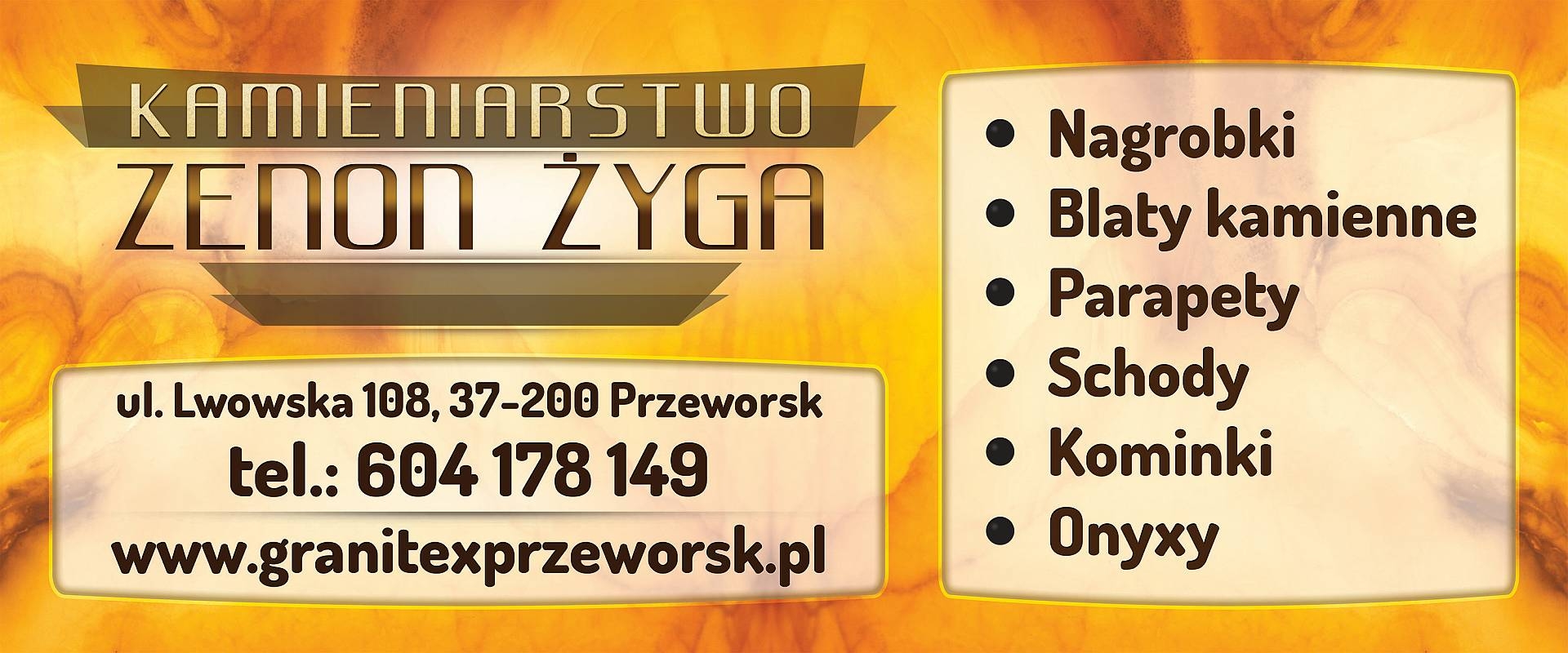 Zakład Kamieniarski GRANITEX to firma z wieloletnia tradycją. Wykonuje usługi z kamieni naturalnych w szerokiej gamie kolorystycznej takich jak granit, marmur, trawertyn, onyks, które obecnie są głównym asortymentem zakładu. Firma posiada 40 lat doświadczenia!