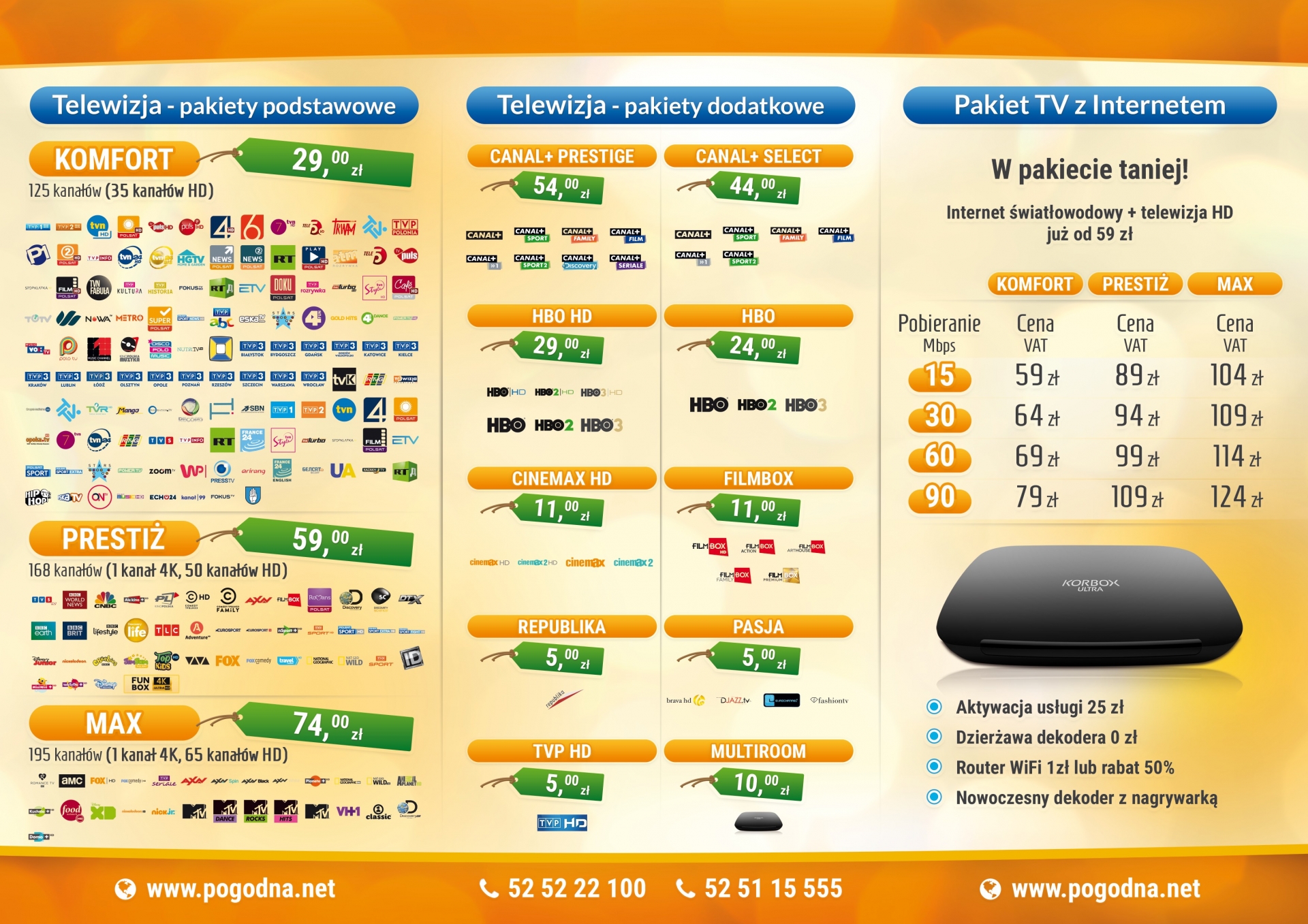 Oferta Telewizji HD oraz Internetu. Pakiety TV z Internetem. Oferta kanałów telewizyjnych. Prezentacja ikon programowych. Pakiety podstawowe, pakiety dodatkowe oraz premium.