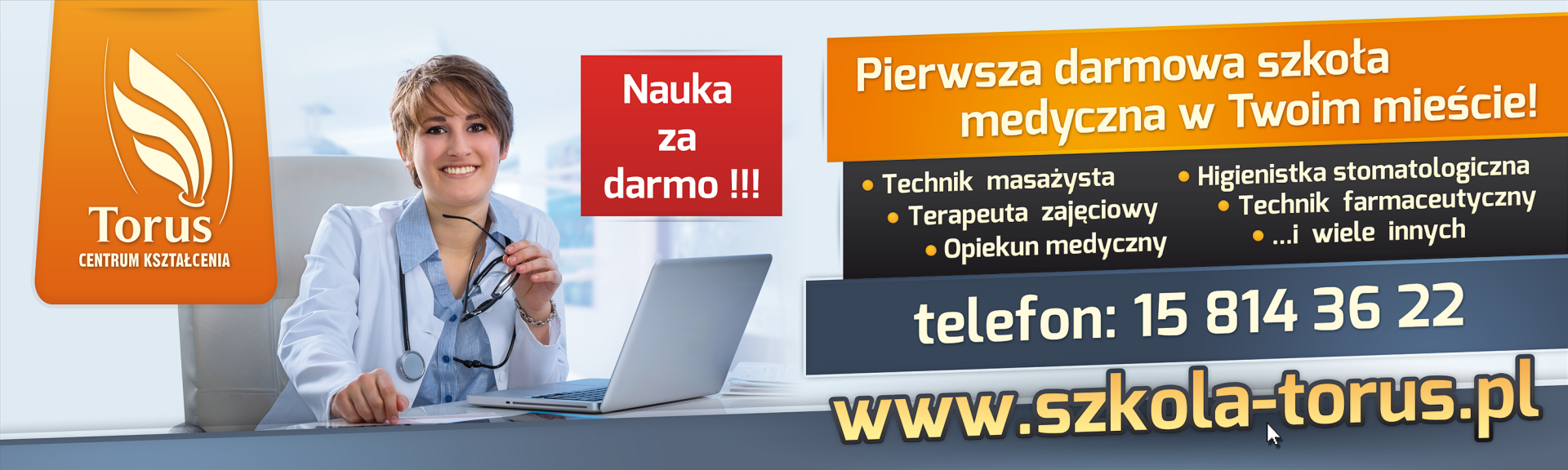 Bannery wielkoformatowe reklamujące Szkoły Medyczne TORUS